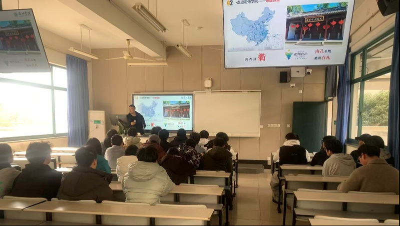 宣讲会上,沈丽娜老师系统介绍了衢州学院的发展历程、办学理念、学科专业布局及未来发展规划,重点围绕同学们最为关心的招生政策进行了深度解读。她详细阐释了2026年专升本的报名条件、考试科目设置、录取规则等关键信息,并结合近年来的招录数据,对工程管理等对口专业的招生形势及广阔的就业前景进行了专业分析,充分展示了衢州学院及建筑工程学院在专升本培养方面的独特优势和资源。 杭州:聚焦价值引领与现场答疑解惑 3月12日,衢州学院专升本招生宣传工作接力进行。建筑工程学院辅导员刘建飞、严浪浪来到浙江建设职业技术学院,开展专升本招生宣讲。 刘建飞老师立足当前就业市场的宏观形势与专升本政策的最新导向,深入剖析了学历提升对于个人职业发展的核心价值和长远意义。在随后的学校推介环节,他全面介绍了衢州学院的办学特色、历史沿革、学科优势、雄厚的师资力量、完善的教学设施以及丰硕的科研成果,全方位展示了学校的综合实力与风采。宣讲结束后,现场气氛热烈,同学们积极踊跃,就自己关心的院校和专业详情、历年录取分数线、备考策略及未来就业方向等问题与两位老师进行了深入交流,老师们耐心细致地一一解答。