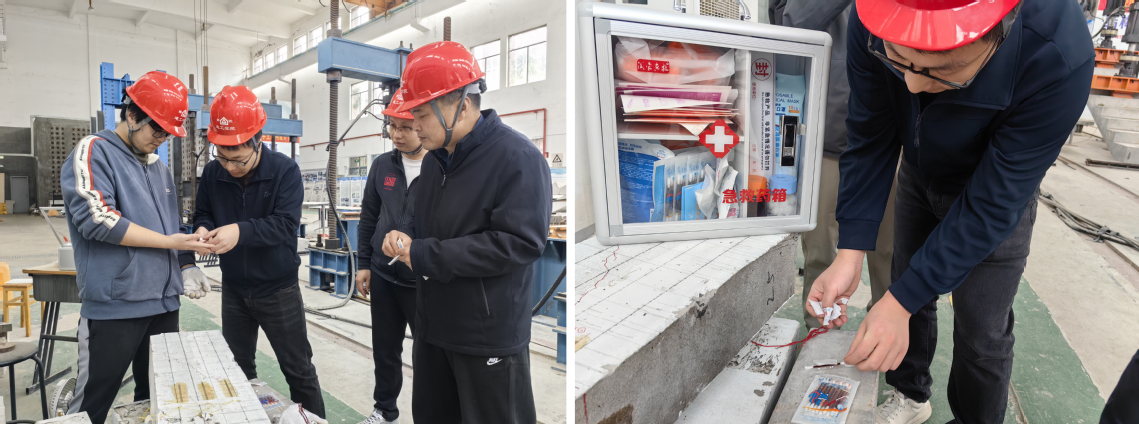 结构实验常涉及混凝土构件、钢筋材料等重物搬抬,以及切割、打磨等操作,意外受伤风险相对较高。为此,实验室不仅在操作区域的显眼位置都配备了包含急救药品、绷带、消毒用品等的医疗箱,还定期组织师生开展急救知识培训,确保每位老师都具备基础急救能力,学生能熟悉医疗箱位置及简单应急处理流程。 通过本次演练让师生深刻认识到实验规范操作的重要性,提高了师生的应急处置能力,实验中心将定期开展各类实验应急演练,持续提升应急保障能力,为师生营造安全可靠的实验教学环境。 |